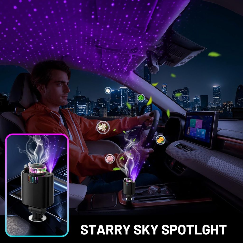 Imagine stepping into your car and being greeted by a mesmerizing starry night sky on your ceiling, the soothing scent of your favorite essential oil filling the air, and all your devices charging faster than ever before.
