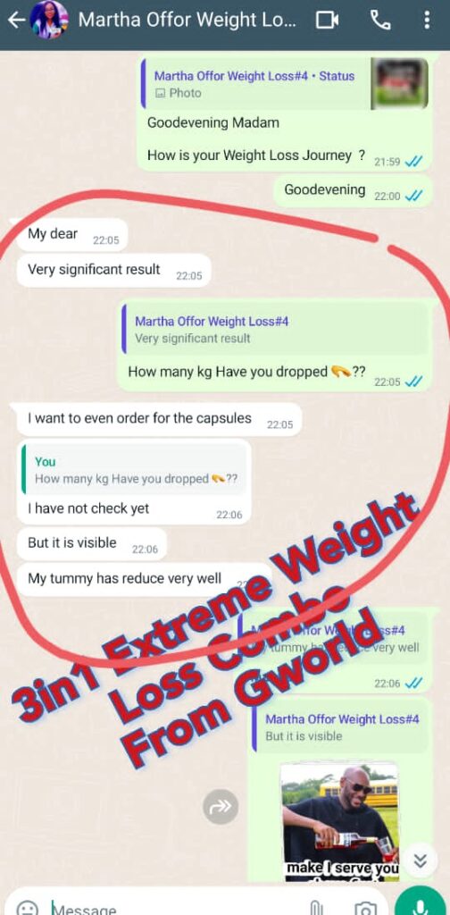 Fortunately, that night while I was scrolling through Facebook, I saw GWorld weight loss combo. I picked up my phone & called the numbers, we spoke extensively about the product so I ordered and the next day I got the product. One of the things I also like about them is their customer service always available to help customers anytime.